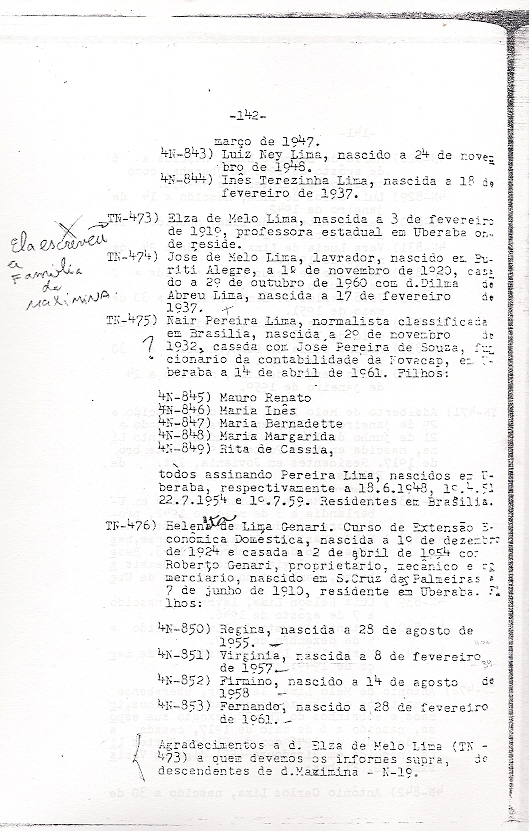 – Eulina Augusta de Melo, c/c José Joaquim de Lima BISNETO DO CAPITÃO DOMINGOS
