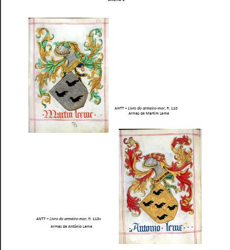 8- António Leme, da Ilha da Madeira, e, filho de Martaen Lem: Documento de sua nobreza, seu heroísmo lutando por Portugal, brasões – Leme -Família de bandeirantes, de São Paulo, no Brasil