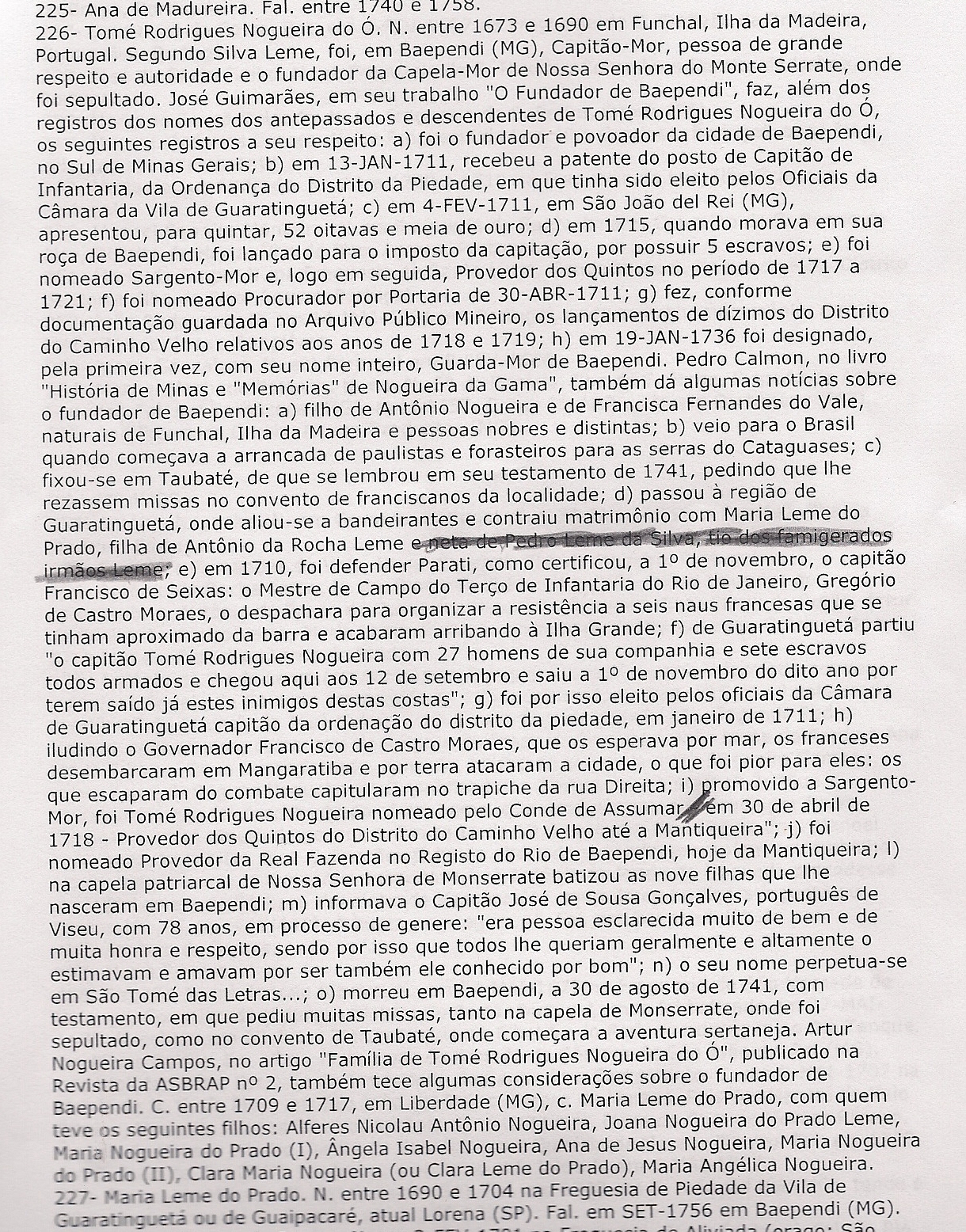 Para josé guimarães, em seu trabalho “o fundador de baependi”, thomé rodrigues nogueira do Ó, em 13 de janeiro de 1711, recebeu a patente do posto de capitão de infantaria, da ordenança do distrito da piedade, em que tinha sido eleito pelos oficiais da câmara da vila de guaratinguetá.
