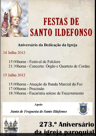 • Data de grande antiguidade a fundação da sua primeira Igreja. Consta que já em 1519 existia uma Igreja com a invocação de Santo Ildefonso, a qual era extramuros, próximo da Porta do Cimo da VilIa e aonde era também venerada a imagem do Senhor Jesus, que tinha a sua respectiva Confraria. Já em tempos imemoráveis se sepultavam no Adro desta Igreja as entravadas e em 1592 a confraria concedeu sepultura aos pobres da Freguesia. No anno de 1634 a Confraria do Senhor Jesus juntou-se à do SS. Sacramento. Foi elevada a Freguesia em 1634, contando então 1790 almas».