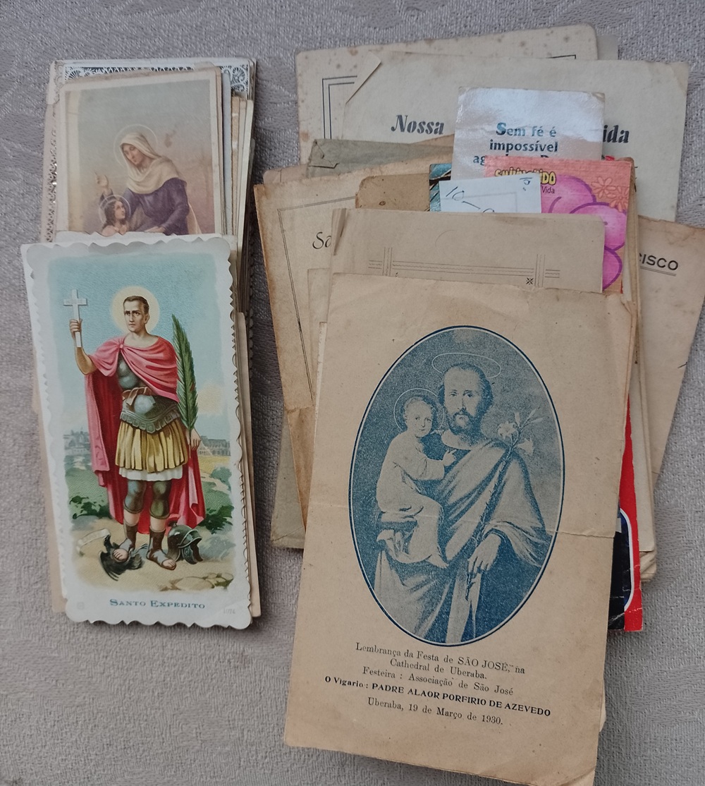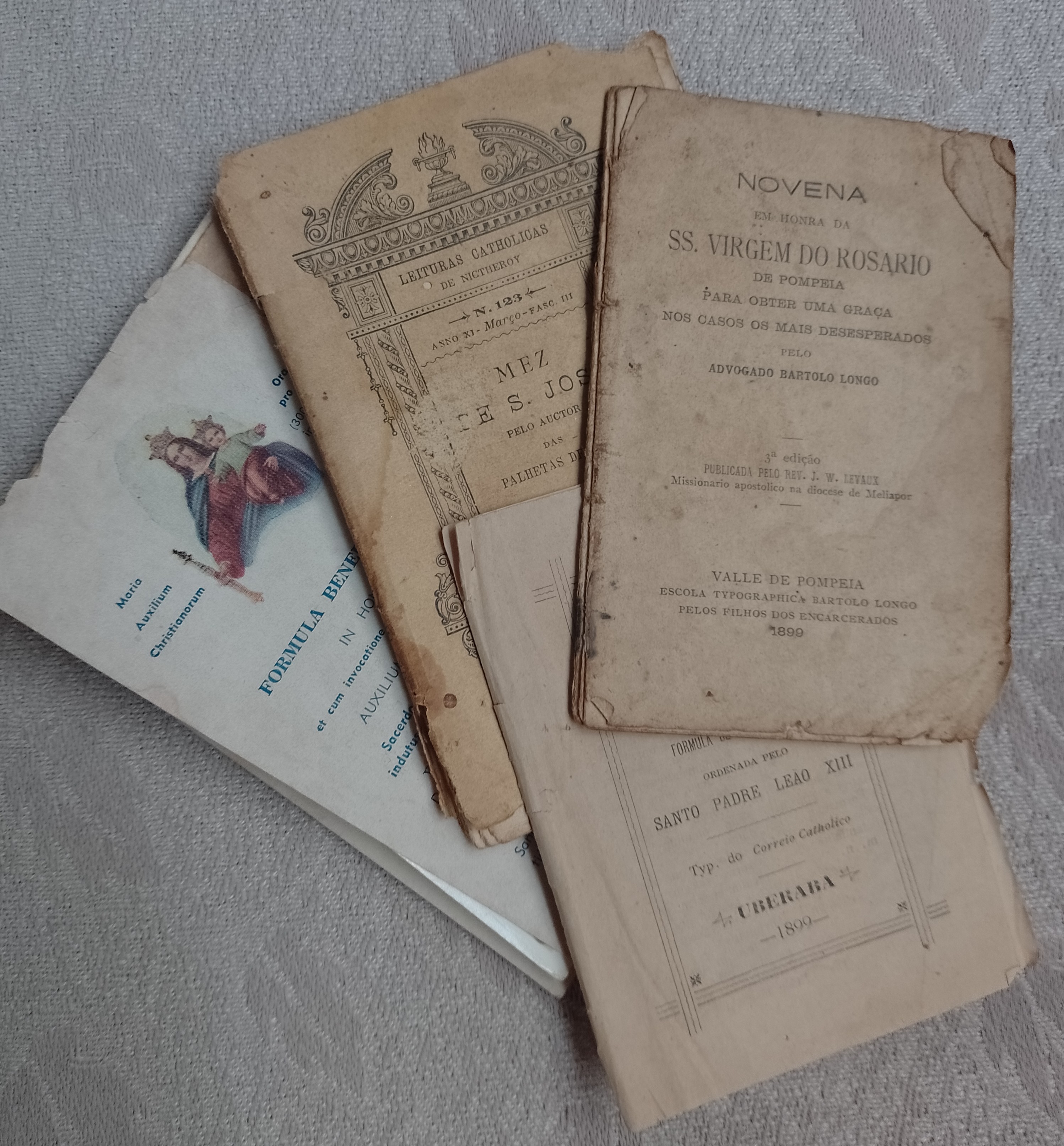 Gente religiosa, relíquias, santinhos, livrinhos de religião de 1899.