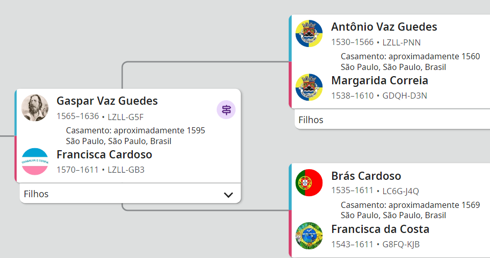Veja a nobre família de Gaspar Vaz Guedes até MATIAS BORGES DA SILVA