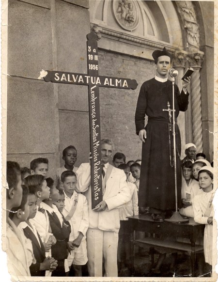 Mário Lima, filho de José Joaquim de Lima, segurando uma Cruz.