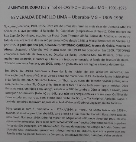 1- Antônio Carrilho de Castro Júnior, Totonho, (1855 – 1933) – Boiadeiro de Uberaba-MG, Brasil, e, seu pai Alferes Carrillho, capitalista, fazendeiro e vereador em Uberaba-MG – Genealogia das Famílias: Carrilho de Castro, Leitão de Castro – Família de Ferreirim, Concelho de Sernancelhe, em Portugal, desde 1.600, e de Ouro Preto-MG, Candeias-MG, Formiga-MG, Uberaba-MG, e, Goianésia-GO, no Brasil