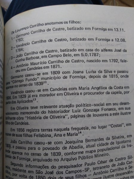 1- Antônio Carrilho de Castro Júnior, Totonho, (1855 – 1933) – Boiadeiro de Uberaba-MG, Brasil, e, seu pai Alferes Carrillho, capitalista, fazendeiro e vereador em Uberaba-MG – Genealogia das Famílias: Carrilho de Castro, Leitão de Castro – Família de Ferreirim, Concelho de Sernancelhe, em Portugal, desde 1.600, e de Ouro Preto-MG, Candeias-MG, Formiga-MG, Uberaba-MG, e, Goianésia-GO, no Brasil