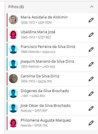 5- Manuel Pinheiro Diniz, patriarca, tronco da Família Silva Diniz, de Contagem-MG, no Brasil, e sua esposa Cláudia de Azevedo e Silva – Seus descendentes em Uberaba-MG, no Brasil