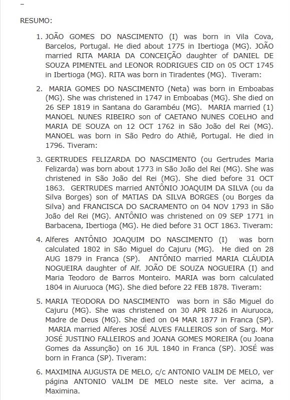 como aqui os VALIM DE MELO de Franca-SP e de Uberaba-MG, descendentes de Júlia Maria do Nascimento, e, de Miguel Lopes da Silva: